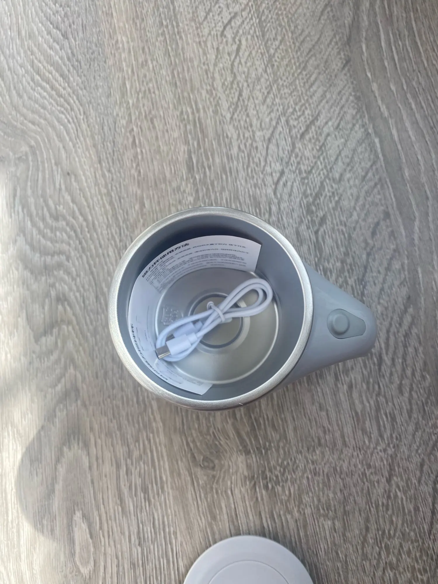 Aún no lo he usado, pero parece práctico y fácil de usar. Viene con una cápsula para mezclar y un cable para cargar, aunque también se pueden usar baterías.